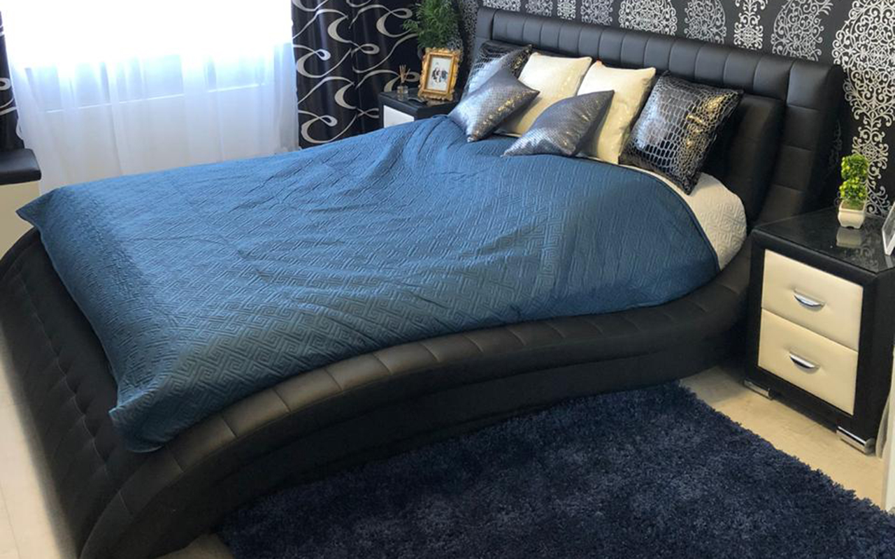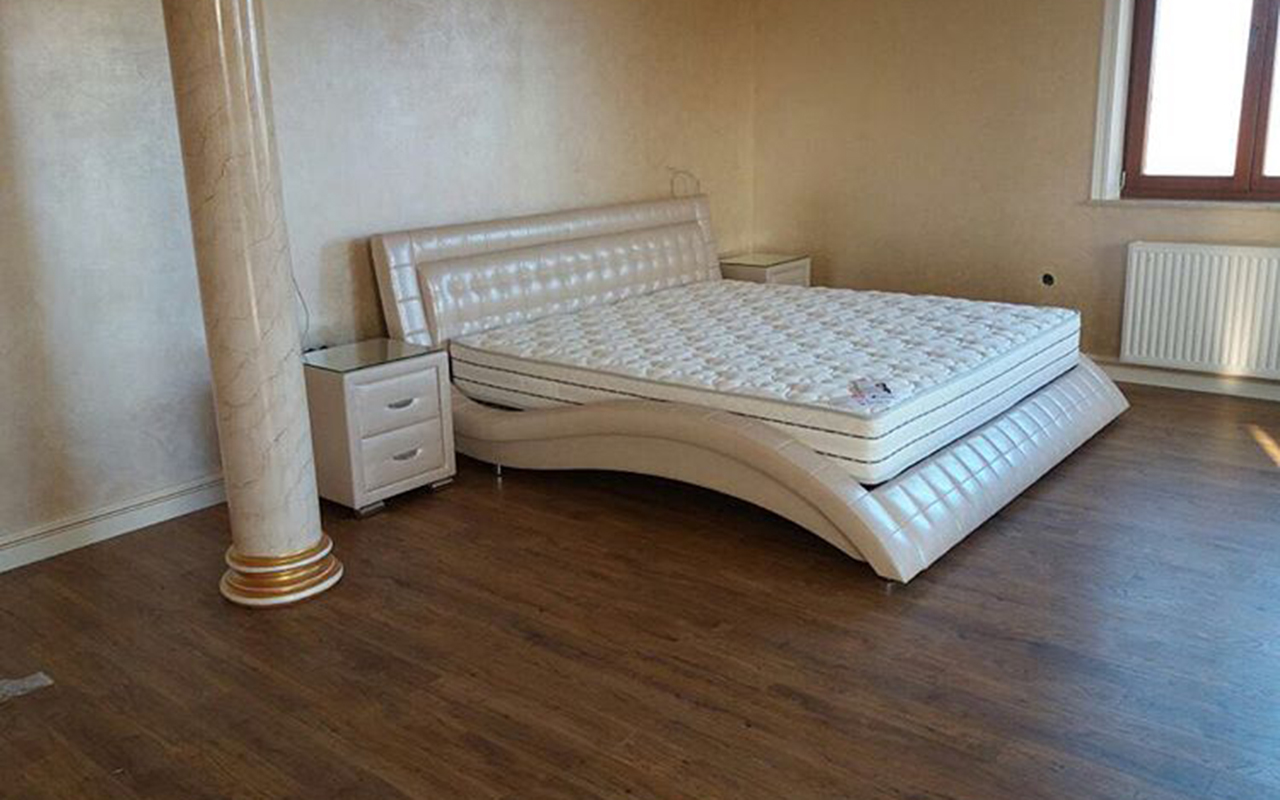 Наконец-то нашла то, что искала. Здорово смотрится в интерьере. Экокожа отличного качества, стороннего запаха нет. Легко собирается кровать.